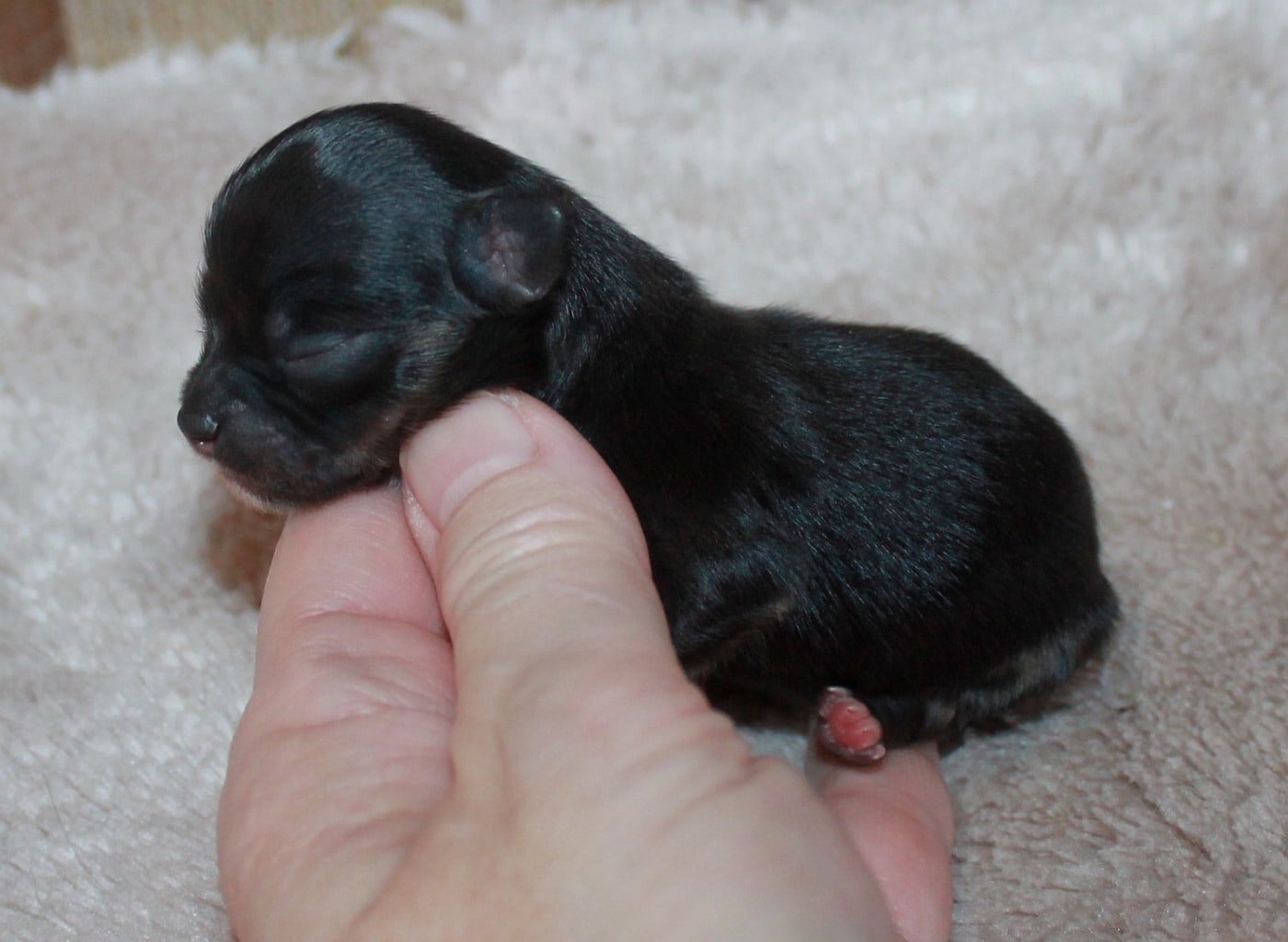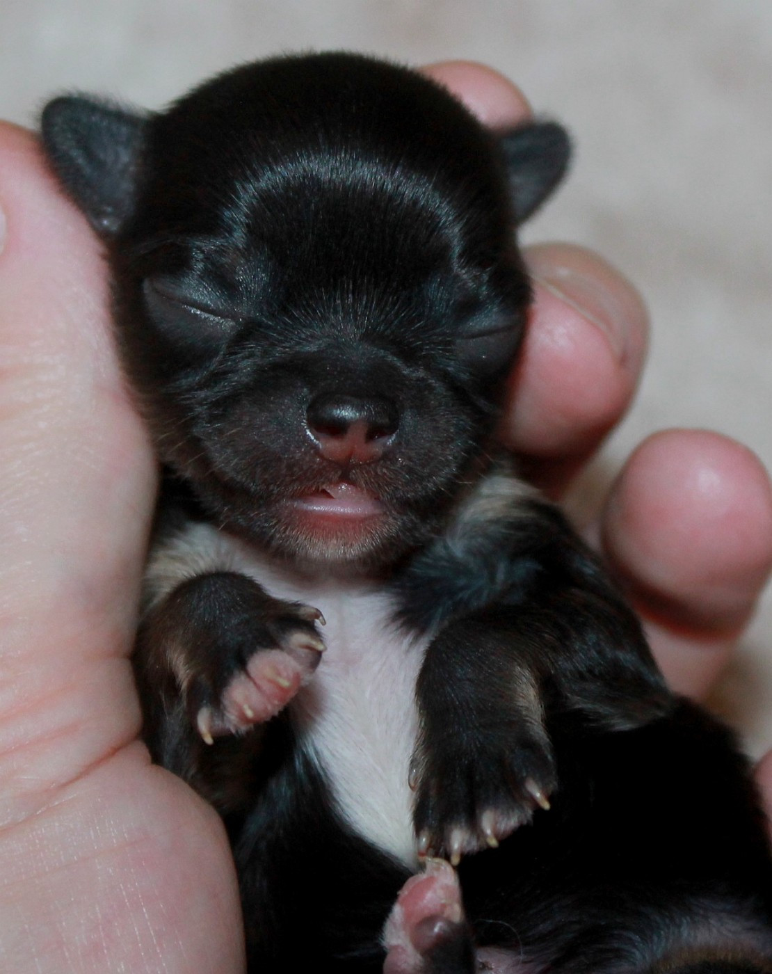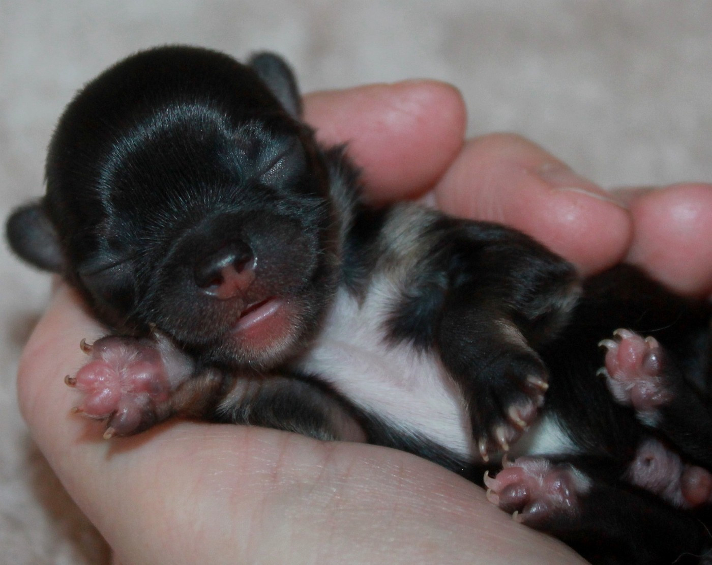Née la plus grosse à 130 gr, une jolie petite poupée avec un très beau marquage tricolore, un grand plastron blanc au poitrail et de jolis chaussons blanc Les réservations ne seront prises qu'après le 15 février